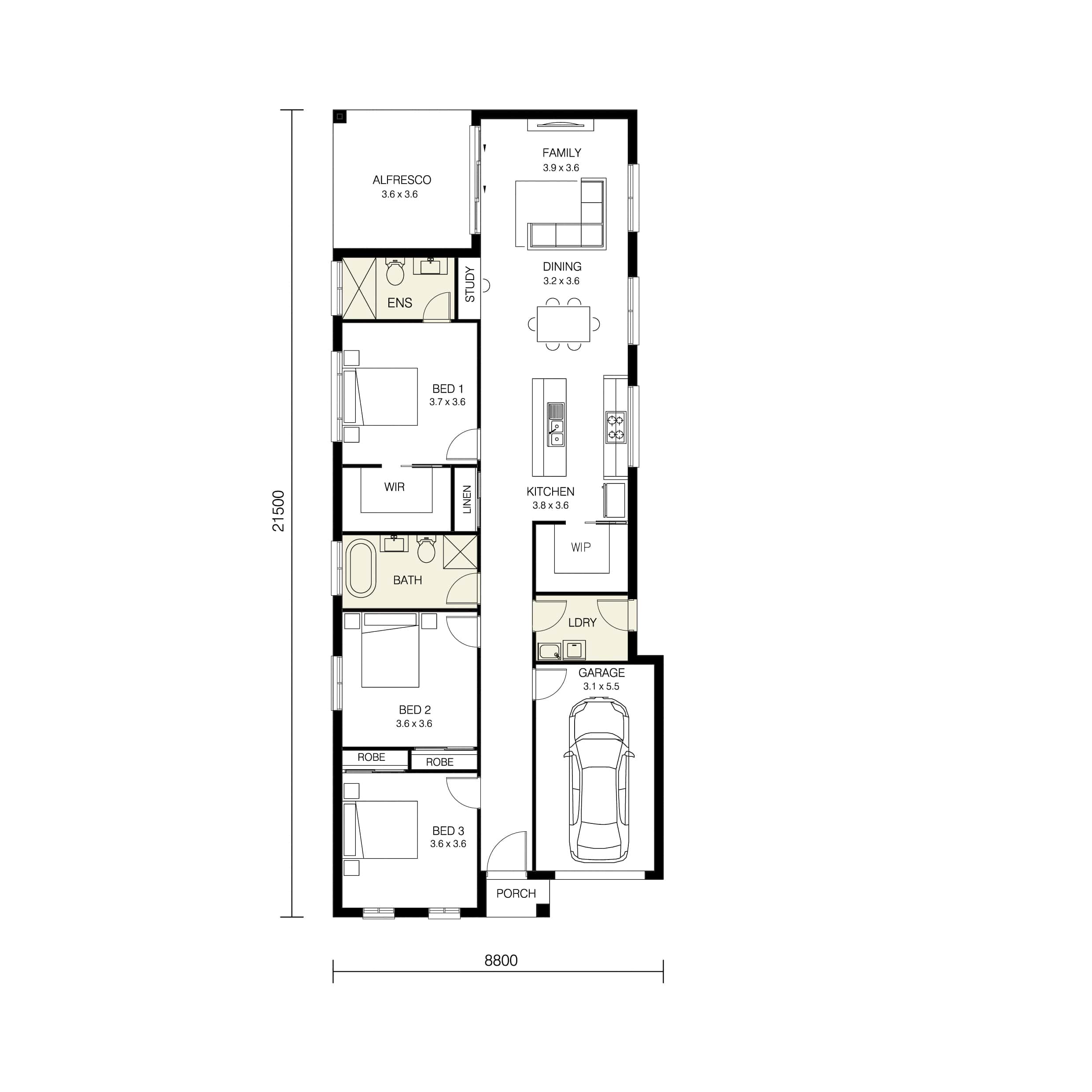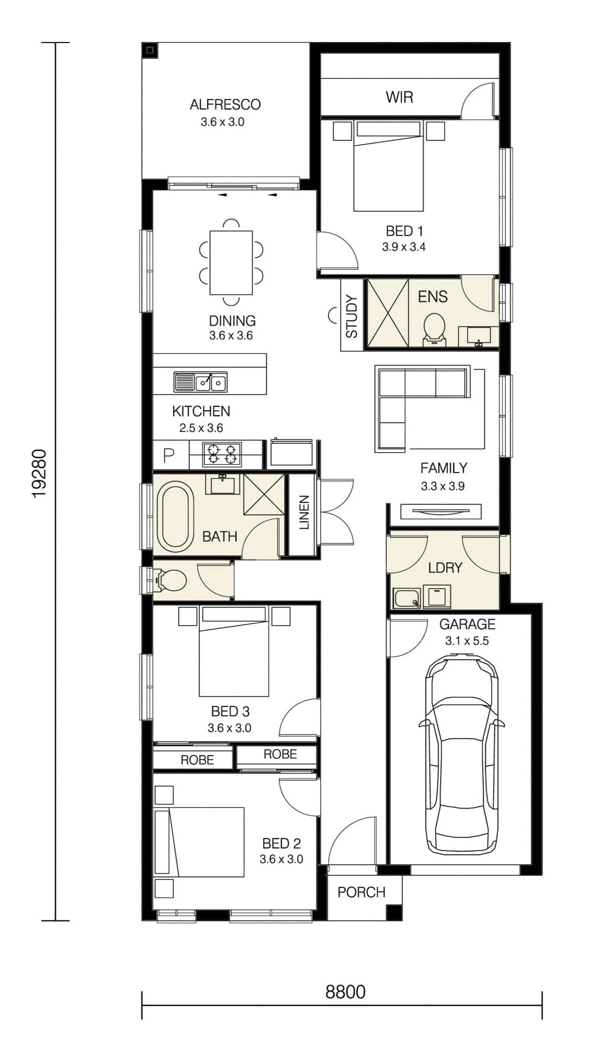 This is our most popular narrow lot design perfectly designed to maximize space and light throughout the home. With 19 squares and an affordable price, this home ticks all the boxes and is suited to young families, down-sizers or savvy investors. There are three different floor plans for you to consider or alternatively our friendly team can also discuss other floor plan changes with you if required.